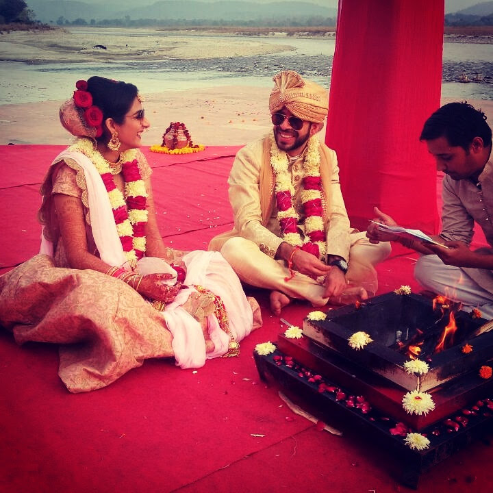 Okay so the first step is figure out where you want to be married. Forget the cliched banquet halls or fancy hotels or exotic beach resorts. That’s not happening with a shoestring budget of 4 lakh Rupees. What you need is a place which is “off the trail”. Think a bit outside the box. Maybe a remote beach resort between Mumbai & Goa. Maybe a mountainside hotel in Himachal Pradesh. Or even a village side resort of Punjab. You get the basic idea. We went for an ashram situated between Haridwar & Rishikesh. The views overlooking the Ganga river and the Himalayan foothills were breathtaking.